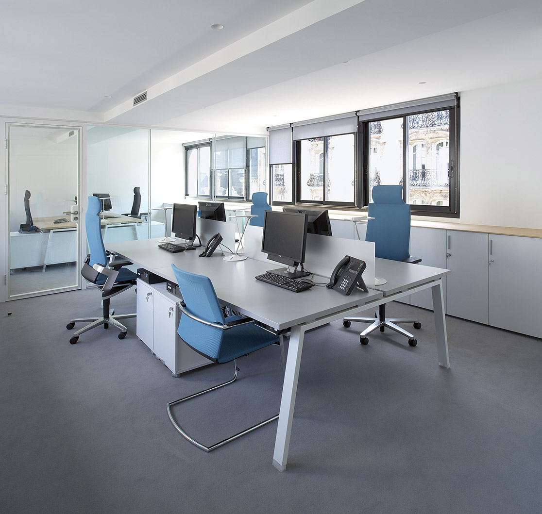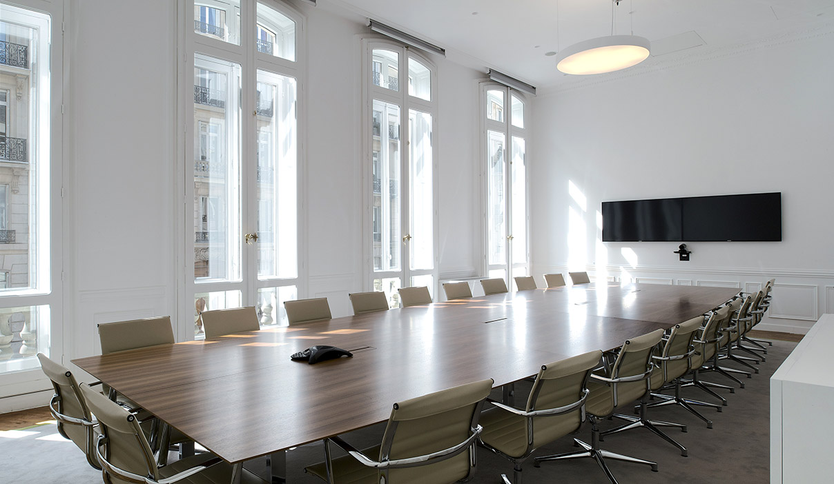 Aménagement de bureaux dans le bâtiment de l'ancienne Cinémathèque française, Paris VIIIe. © NeM architectes